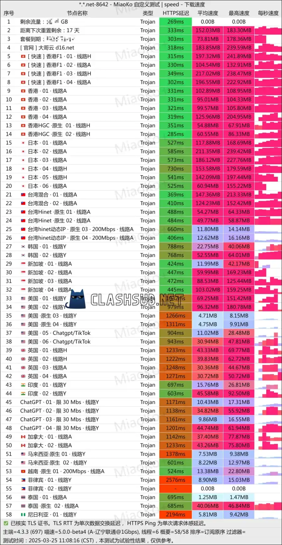 测试节点为 Clash 订阅默认配置自动选择的 [ 快速] 香港 F1 02 线路 A 节点,其他节点使用体验类似。