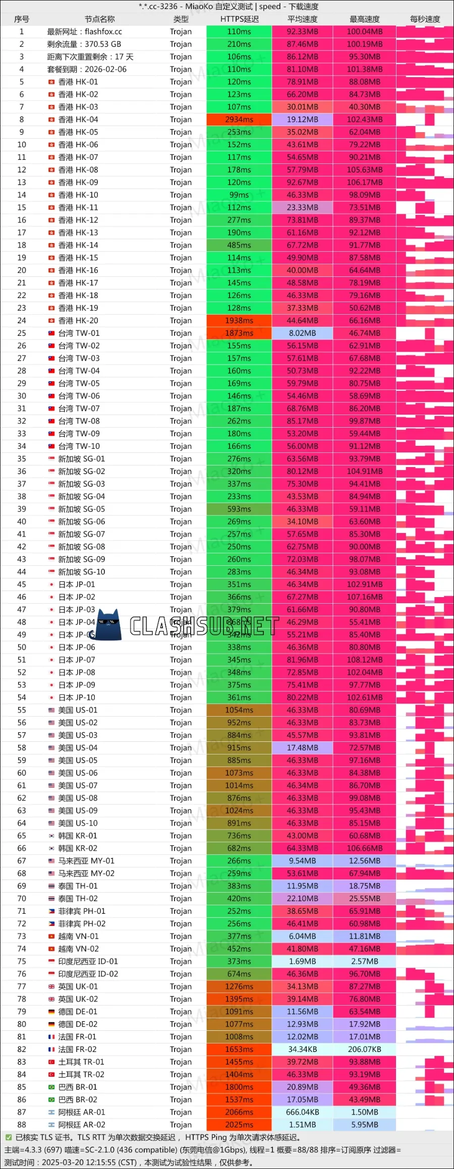 测试节点为 Clash 订阅默认配置自动选择的 香港 HK 06 节点,其他节点使用体验类似。