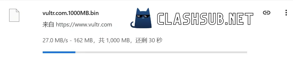 测试网站为 Vultr 日本东京服务器,VPN节点为 Clash 订阅默认选择的香港节点 ,其他节点使用体验类似,基本上都可以满足我们日常下载大型文件的加速需求。