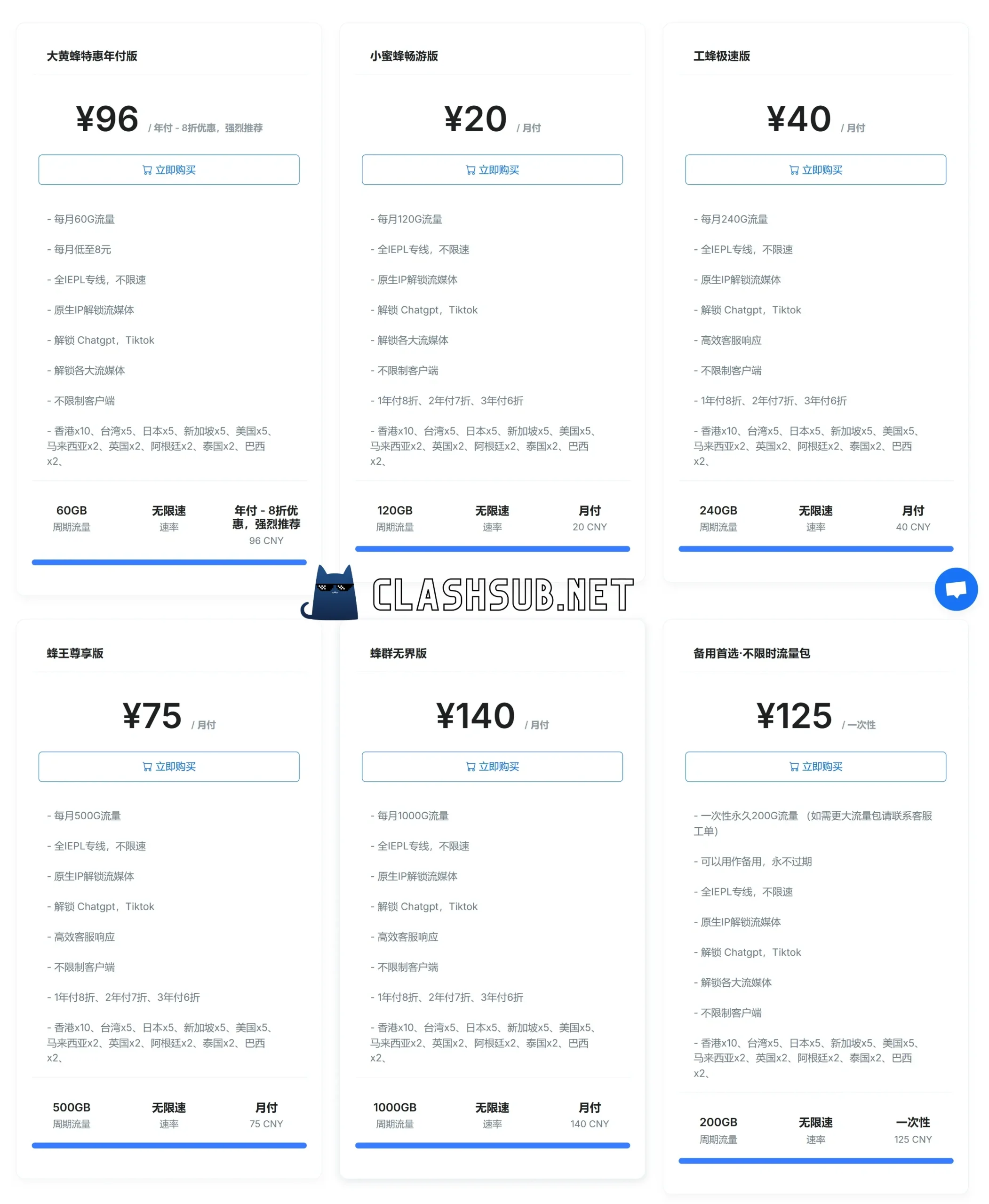 小蜜蜂机场套餐支持月付,最便宜的套餐为年付套餐,¥96 一年的价格,每月 60G 流量上限,套餐选择季付、半年付、年付均有一定幅度优惠。