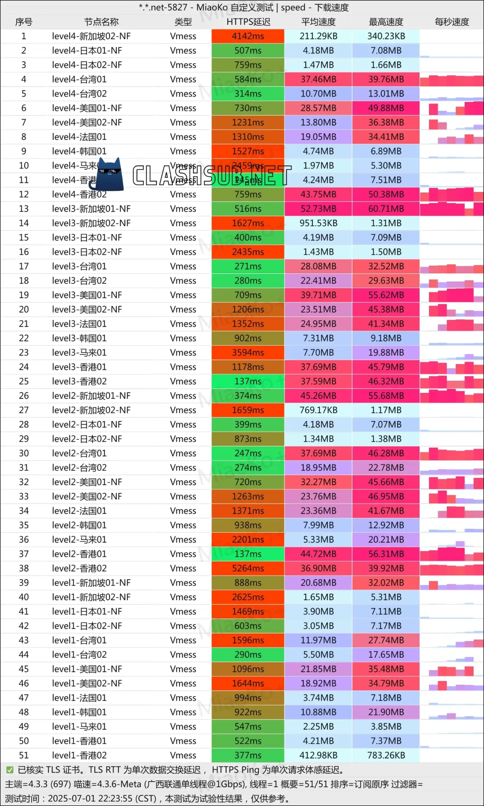 通过测试来看,扬帆云机场常用地区节点可用性和多数节点的速度都能满足日常使用需求,该测速图基于中国联通宽带测试。